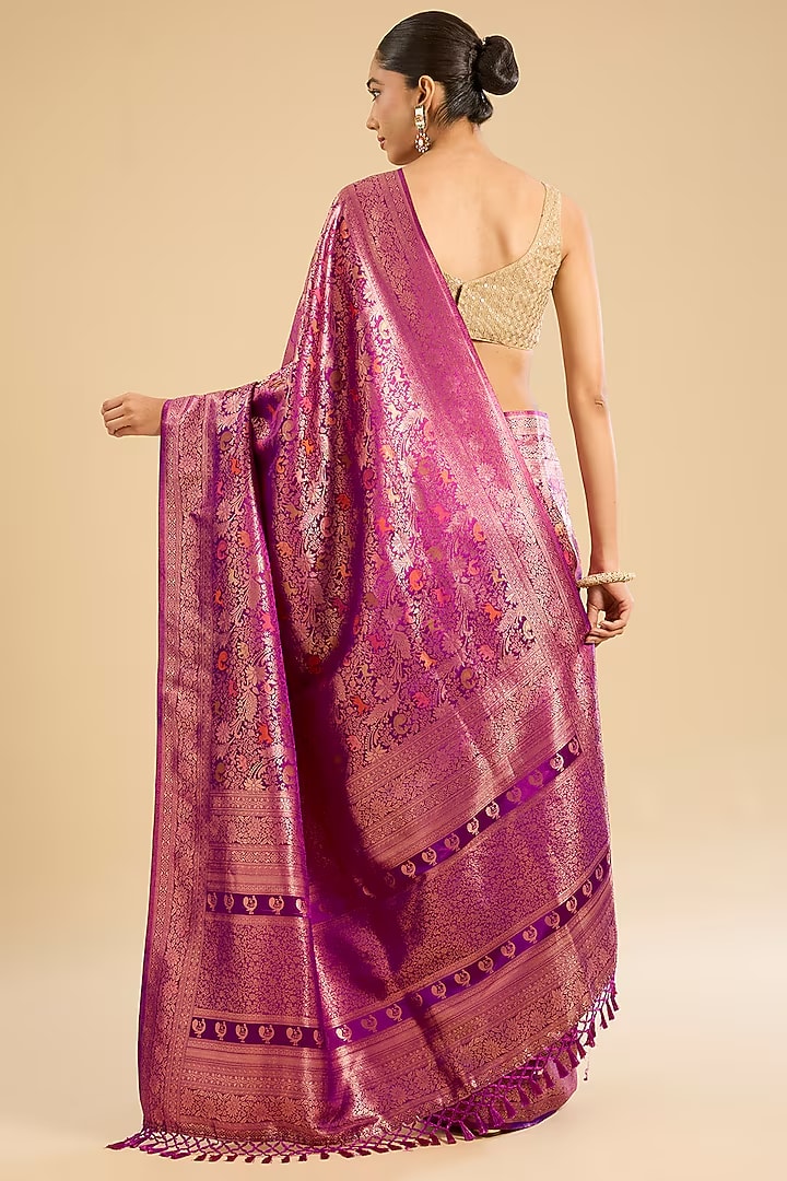 Magenta Pink Silver Zari Work Saree Set