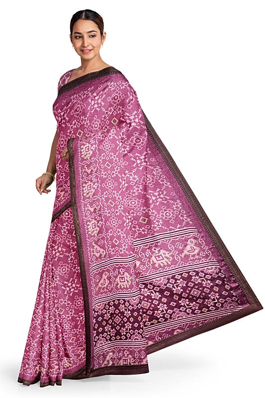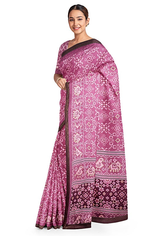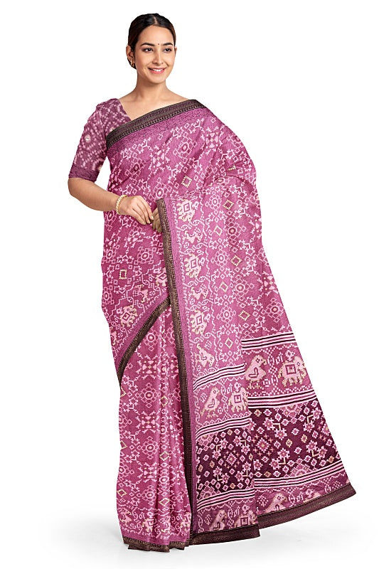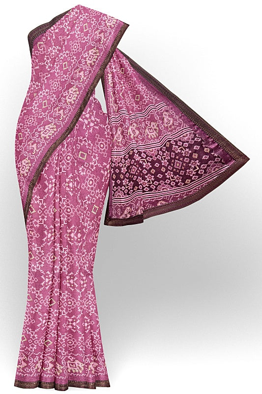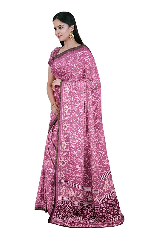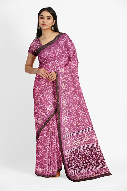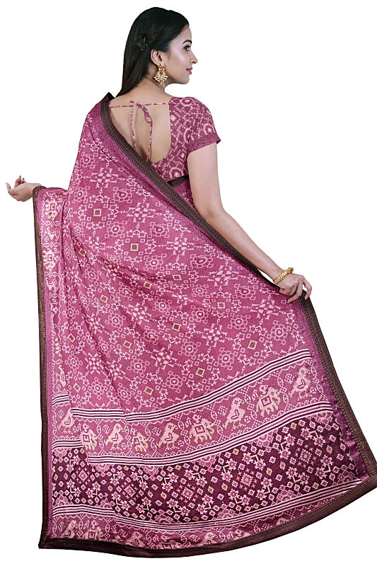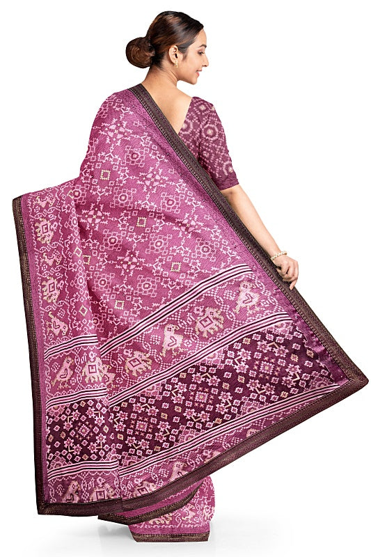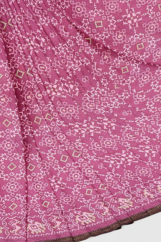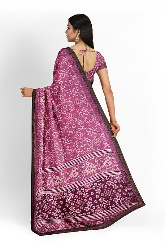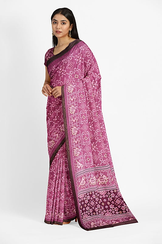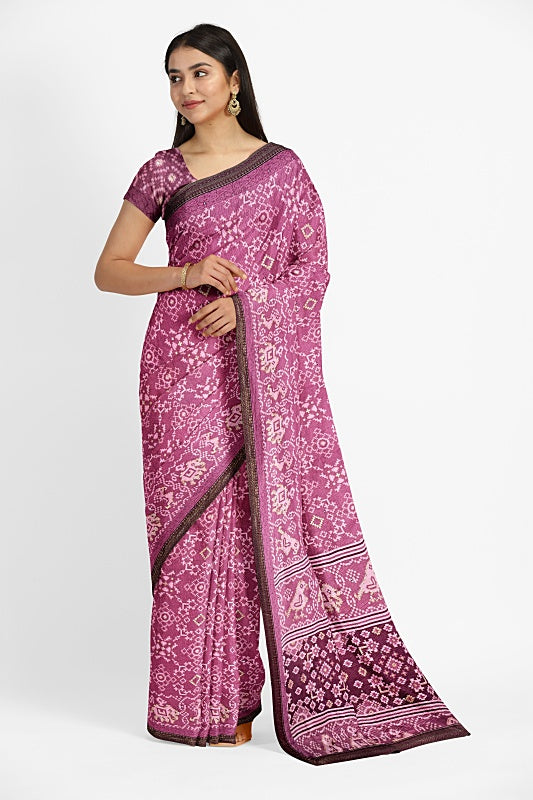 Crafted from soft, lightweight georgette, the saree offers a comfortable, effortless drape in an elegant Purple hue.