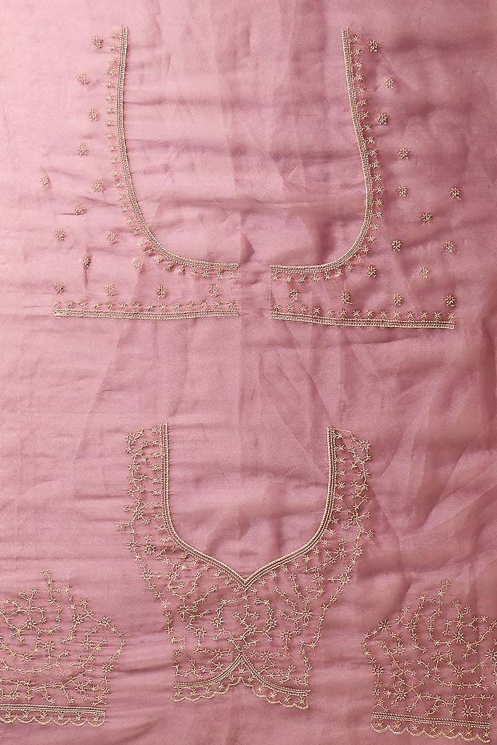 This saree is an ode to modern traditional design. The border is finished with elegant scalloped cutwork, lending a soft, designer touch. The body of the saree is adorned with intricate jaal embellishments and sprinkled with dazzling sequins, creating a rich, all-over sparkling effect.