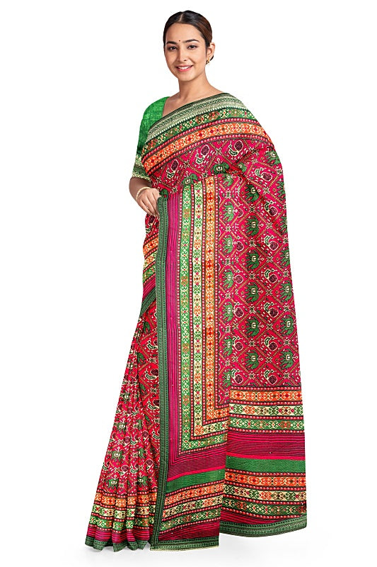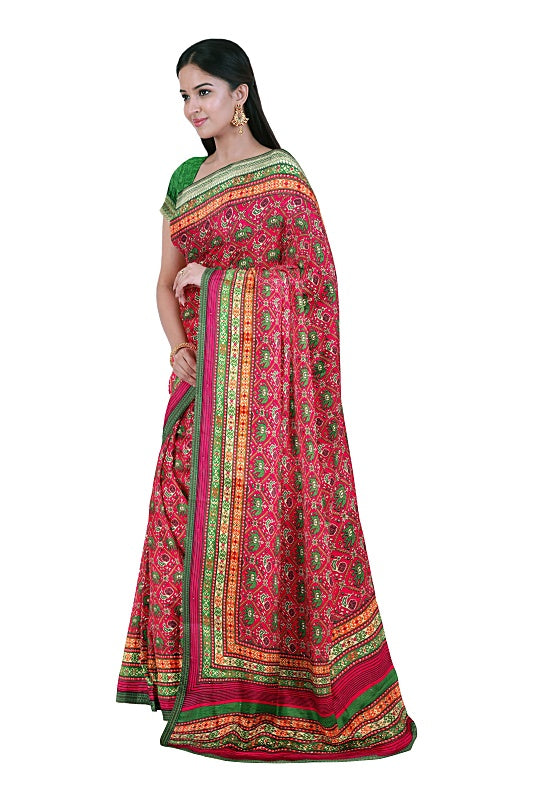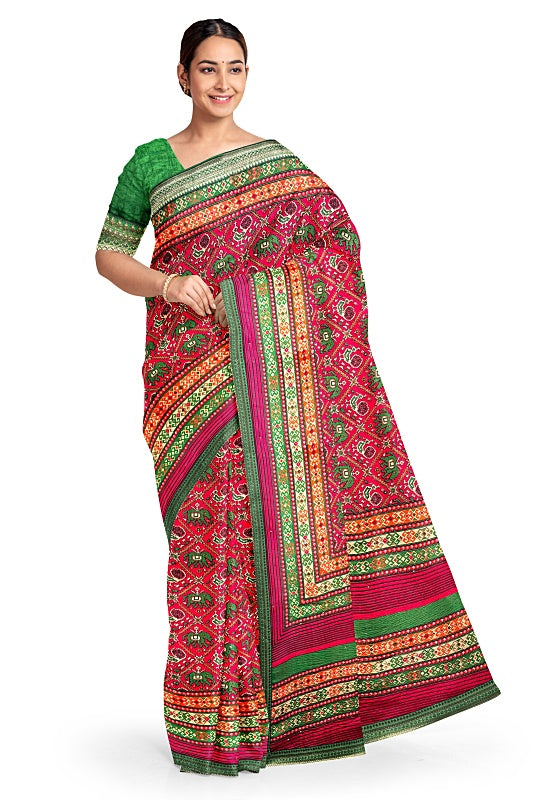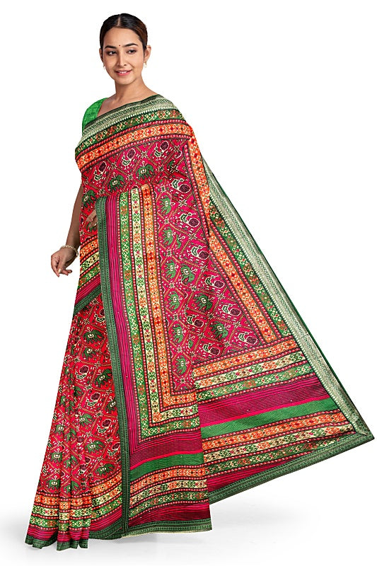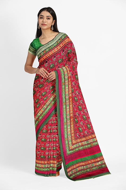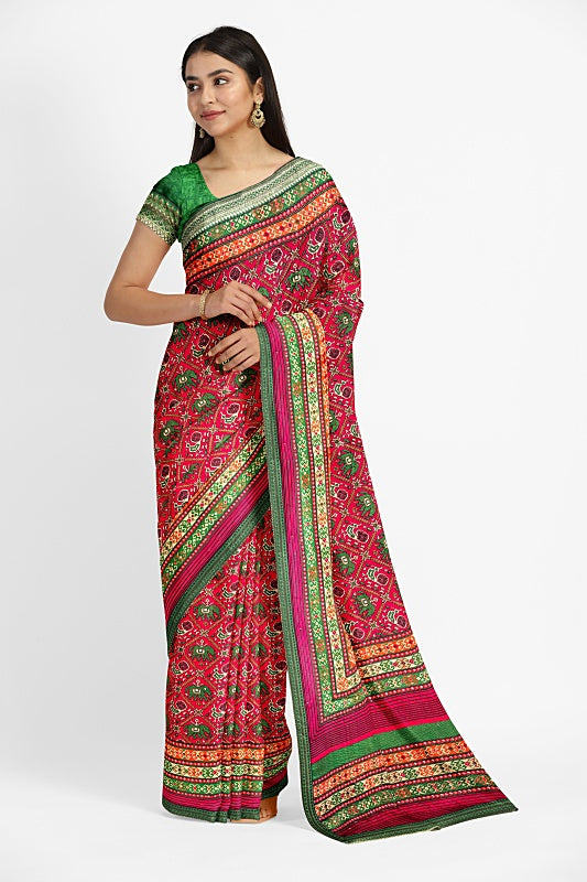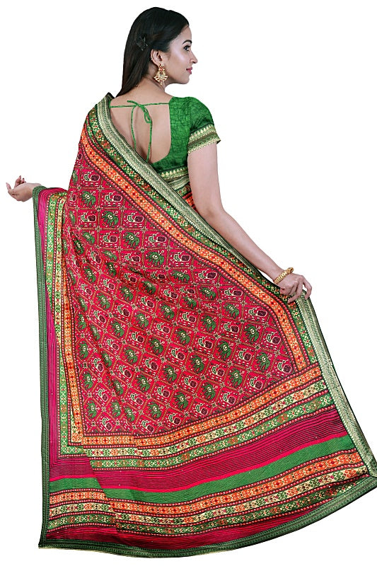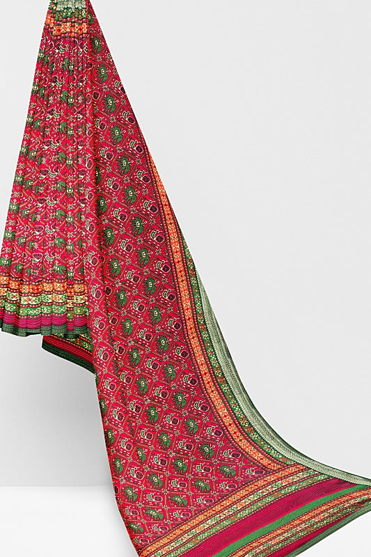 Crafted from soft, lightweight georgette, the saree offers a comfortable, fluid drape in a vibrant Red hue.