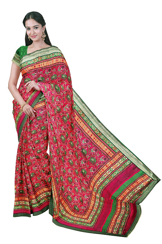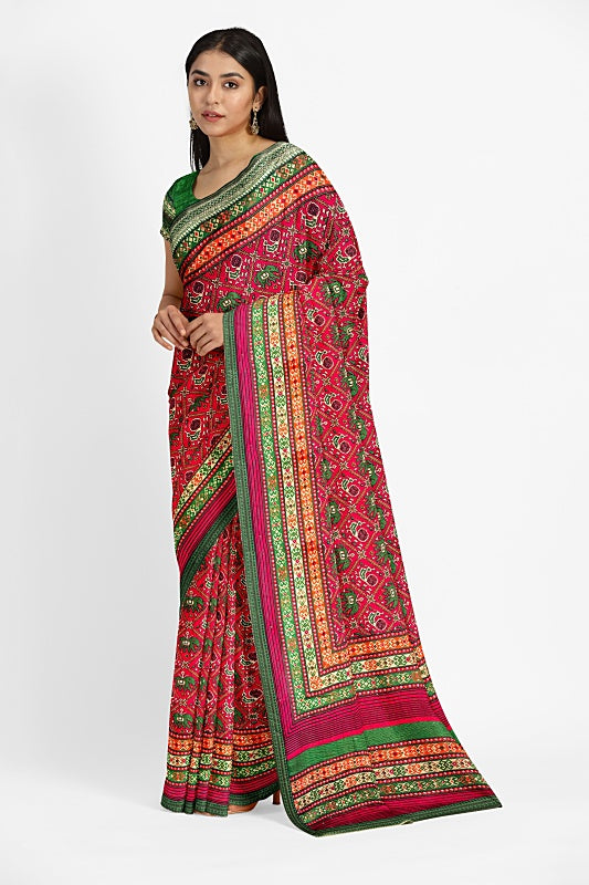 The Crimson Savannah: Red Georgette Bandej Saree