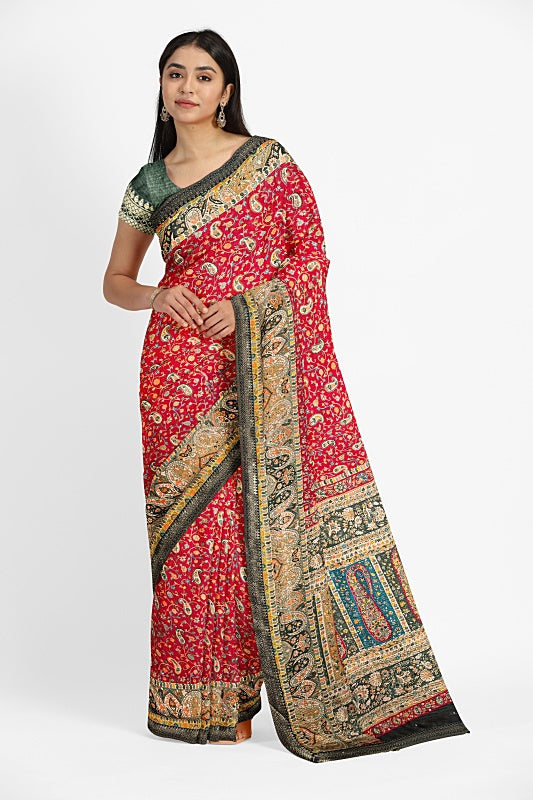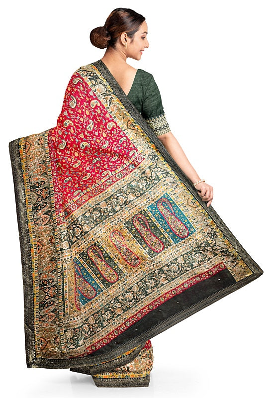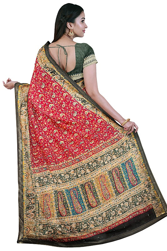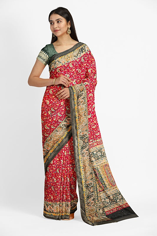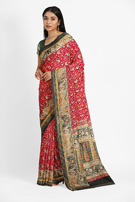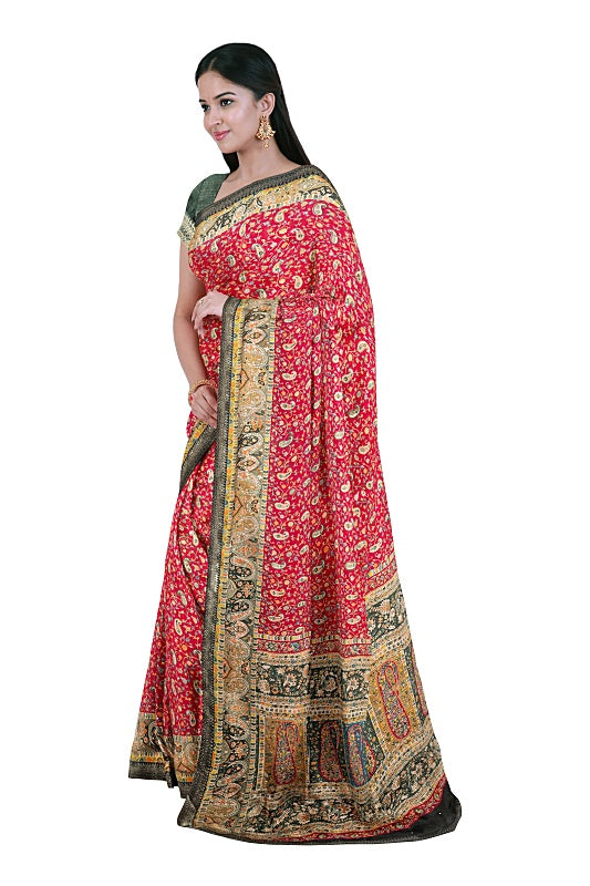 The Desert Jewel: Deep Red-Rust Georgette Saree