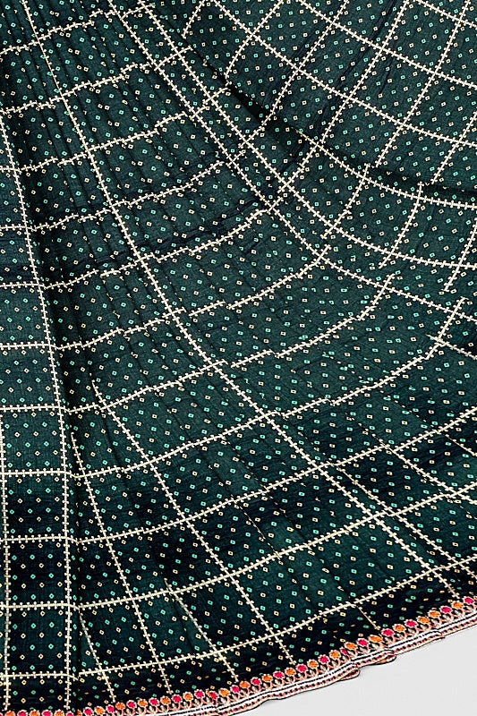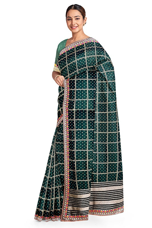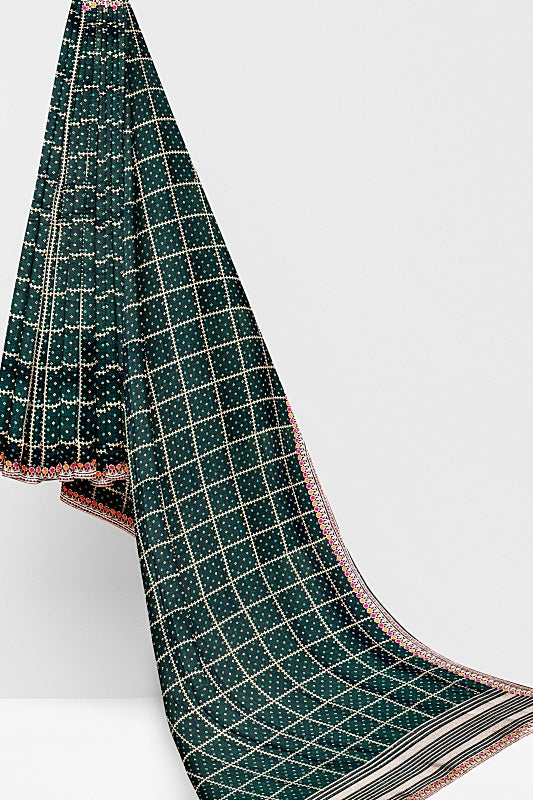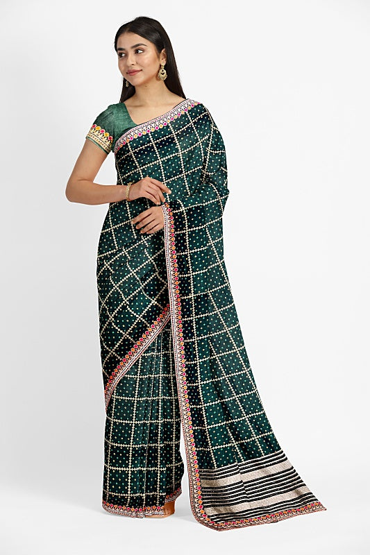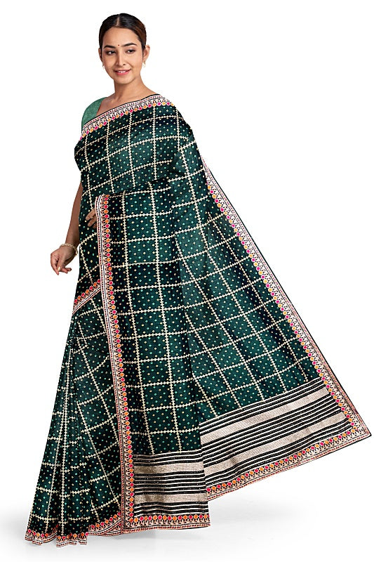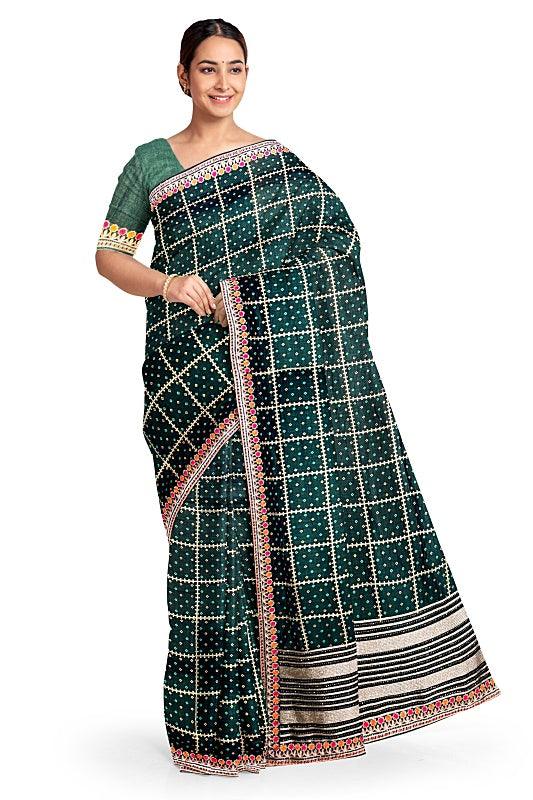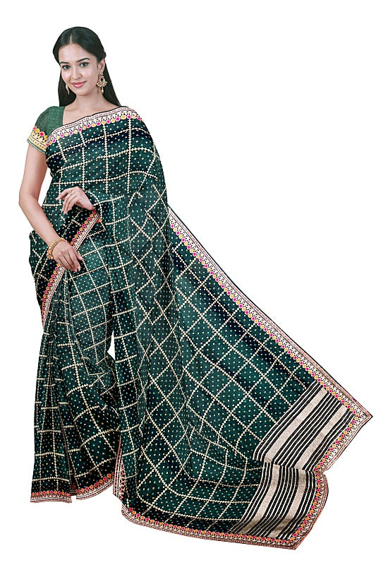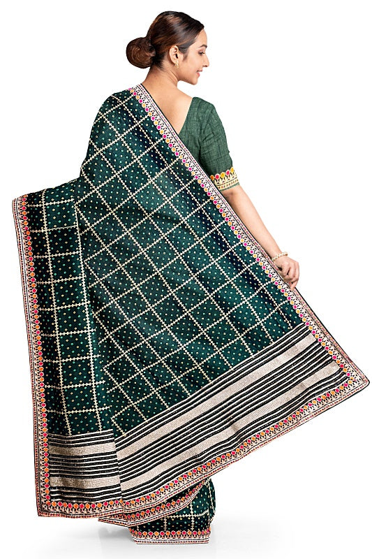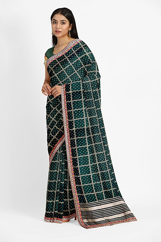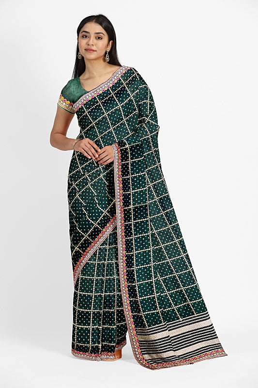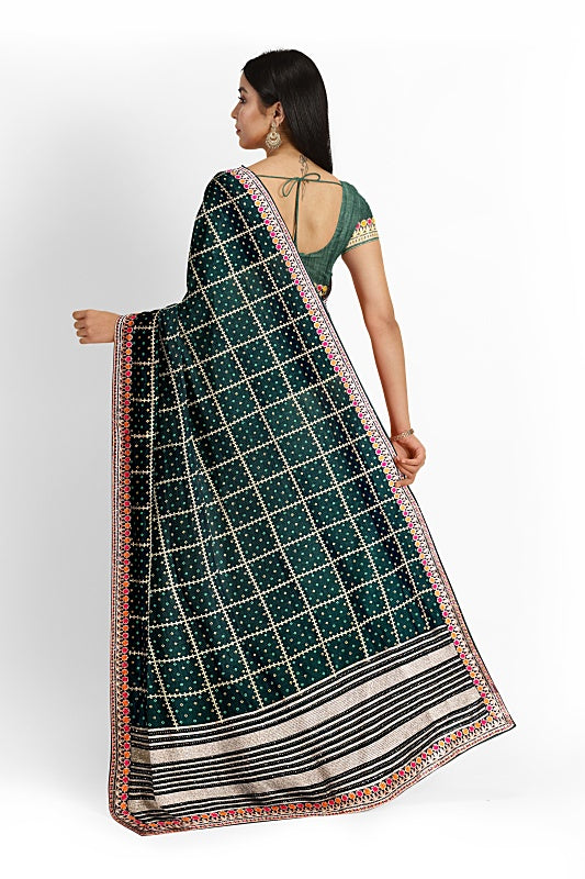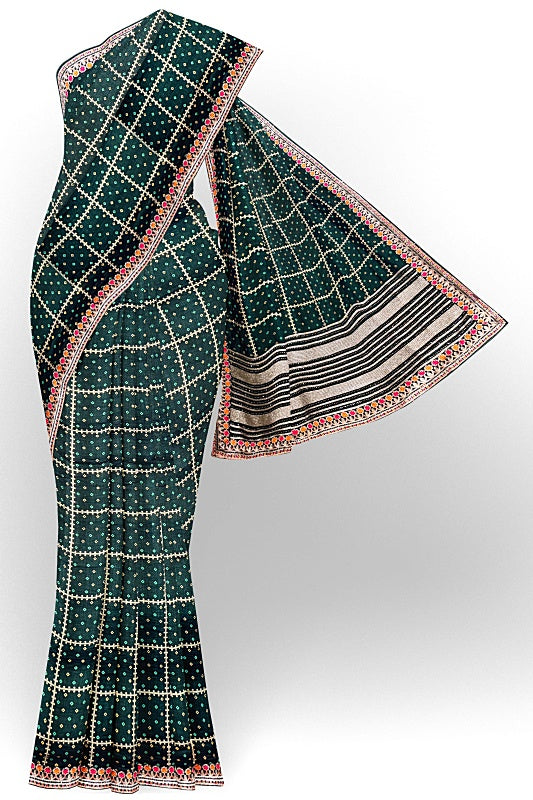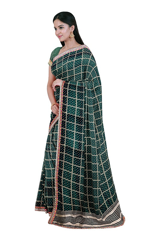 The Emerald Meadow: Forest Green Georgette Saree with Bandej and Resham