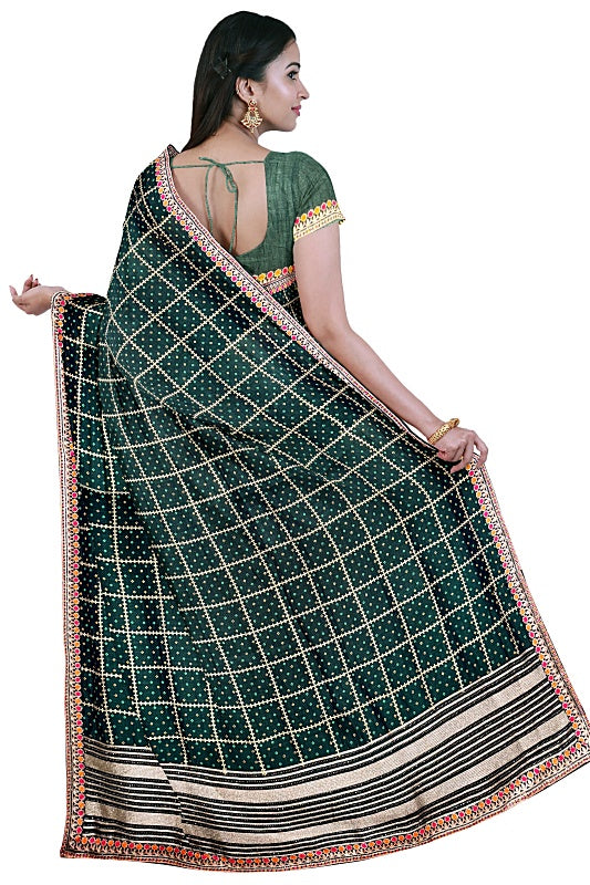 Crafted from light and flowy georgette, the saree offers a comfortable, graceful drape in a rich, nature-inspired Forest Green hue.