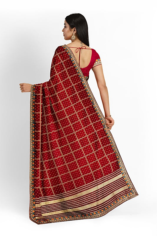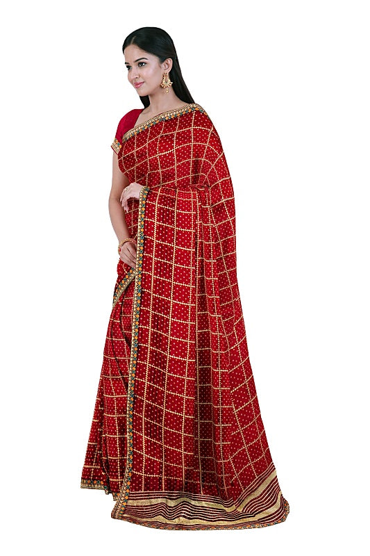 The Ruby Whisper: Maroon Georgette Saree with Swarovski Accents
