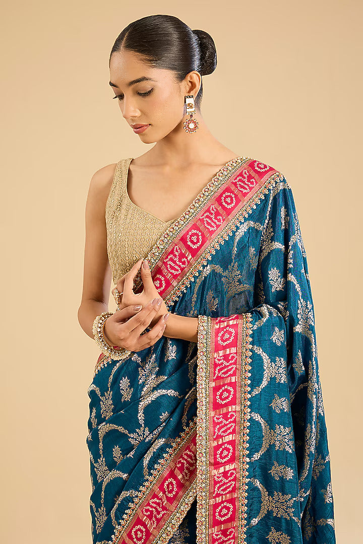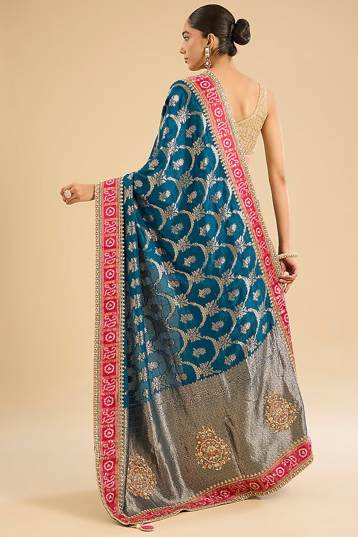 The Sapphire Song: Peacock Blue Georgette Saree with Zari Work