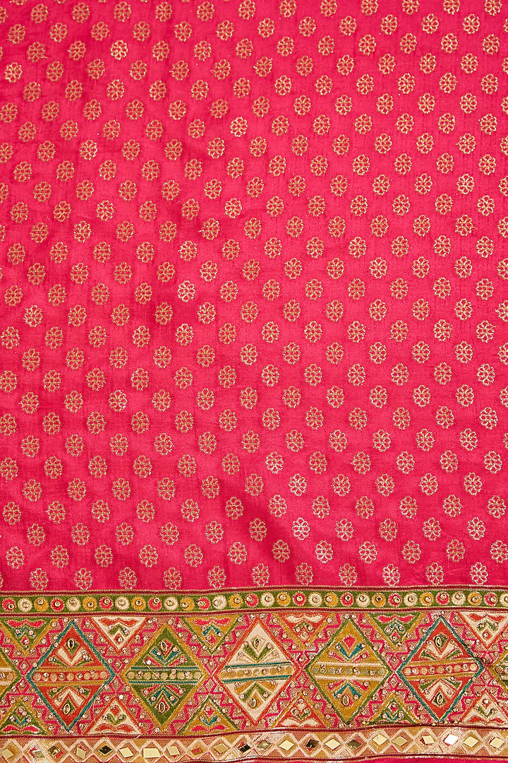 The set comes with an unstitched blouse fabric, giving you the freedom to customize a perfect, tailored fit. Achieve a chic ethnic aesthetic by styling this vibrant saree with comfortable wedges, traditional gold jhumkas, and a refined sleek bun. This opulent ensemble is your ideal choice for high-profile events like sangeet ceremonies, festive celebrations, and grand family functions.
