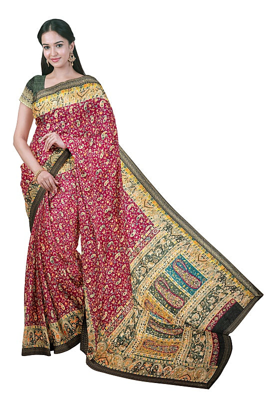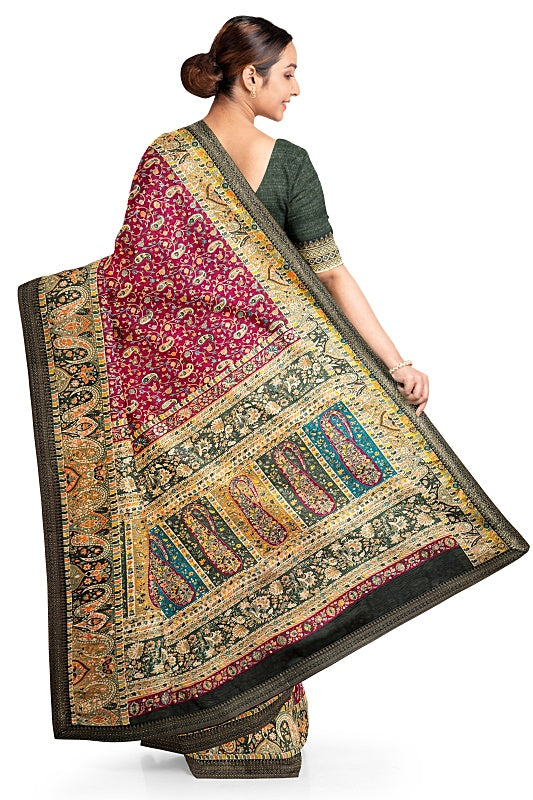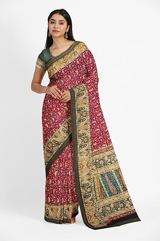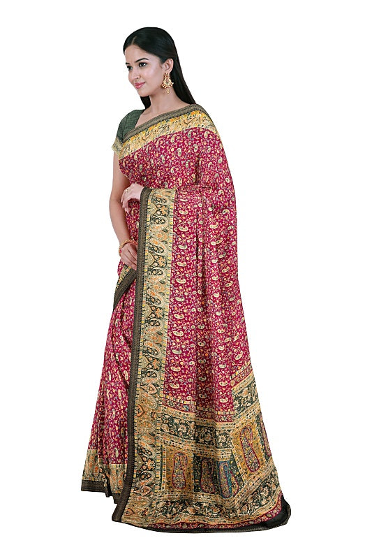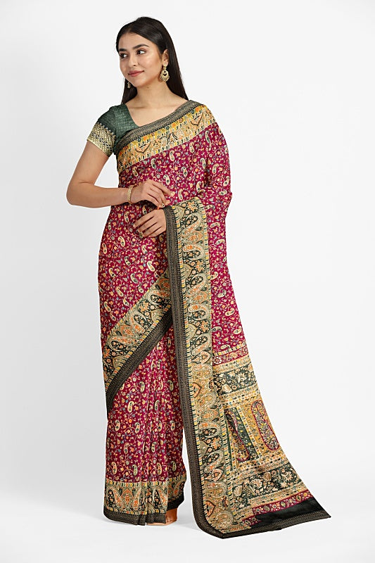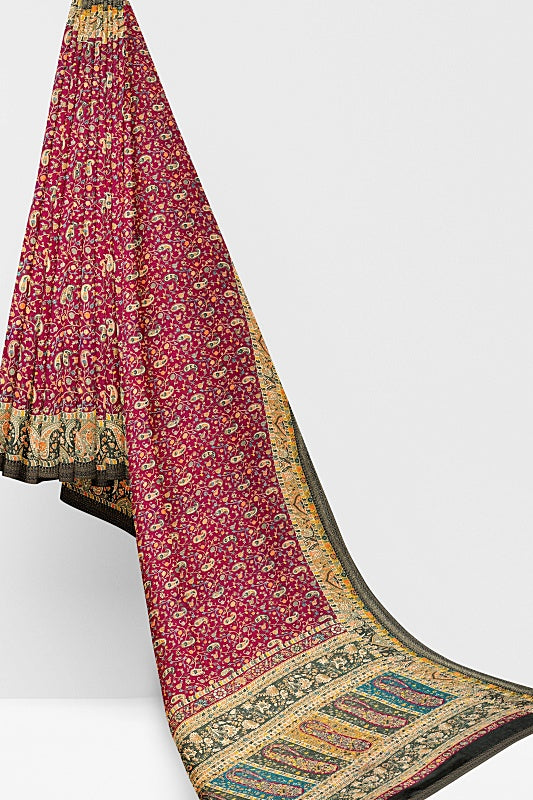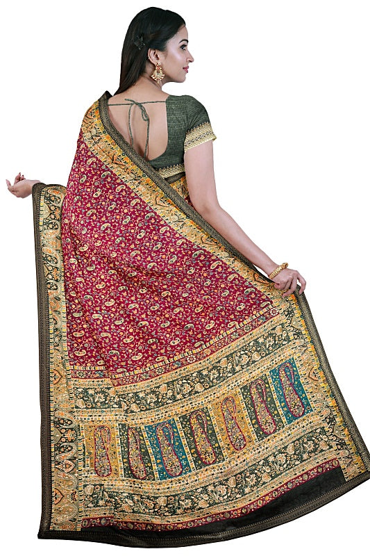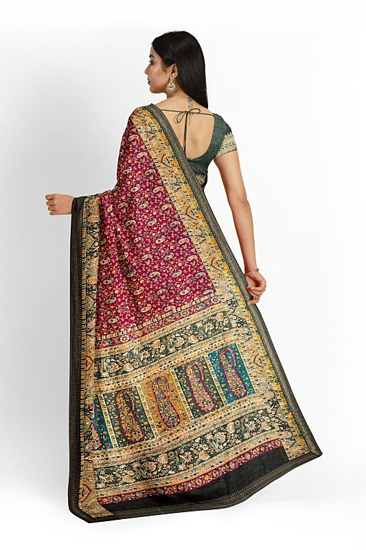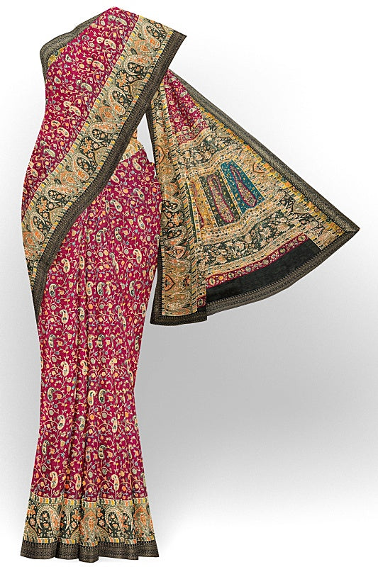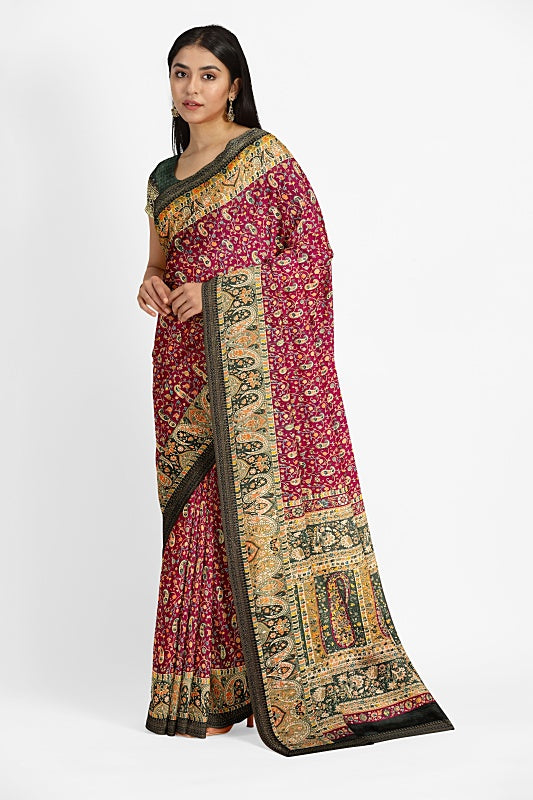 The Vineyard Bloom: Deep Wine Georgette Saree
